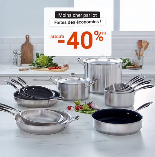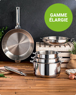 Durable, hygiénique et compatible tous feux. Idéal pour une cuisson homogène ! Faites le choix de la performance et de la longévité en vous équipant avec les meilleures gammes de cuisson tout inox jusqu'à -25%* dès 2 !